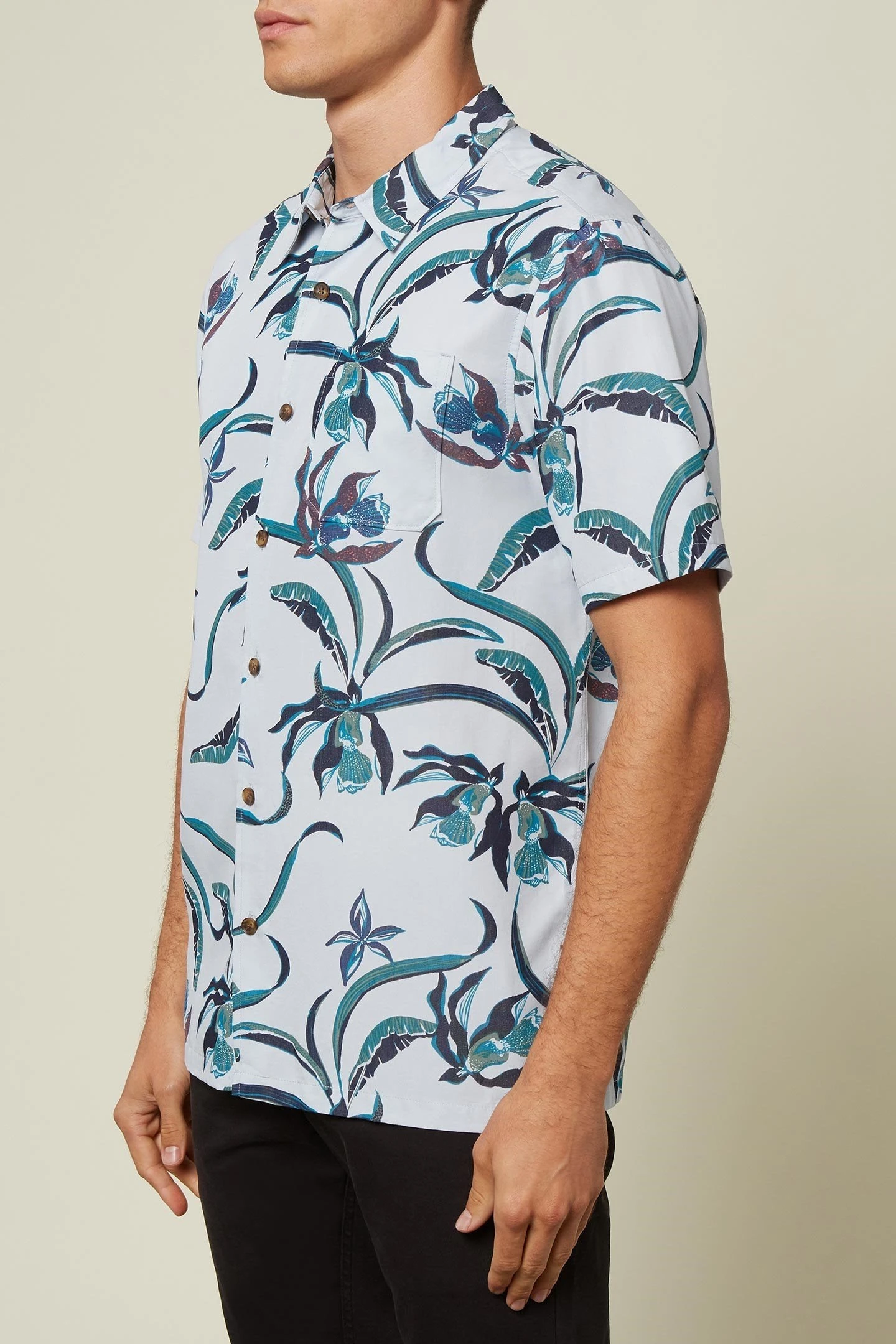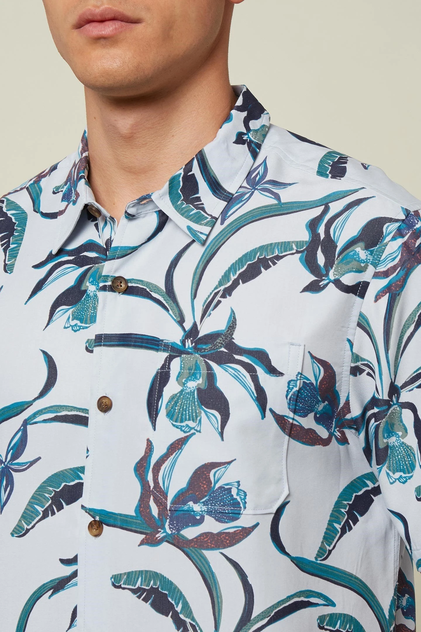 This is a premium quality button-up shirt that has an allover Hawaiin print design and straight bottom hemline. The fit is relaxed in the body and sleeves.